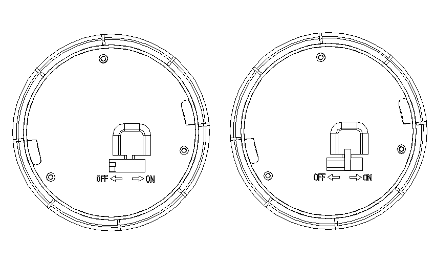4, incorporer les deux joints à pression sur la base du détecteur dans la fente de détecteur. Tournez le produit dans le sens des aiguilles d'une montre afin de la fixer fermement à la plaque de montage.