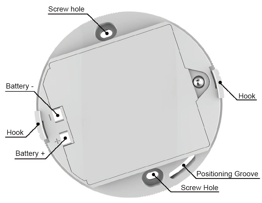 Remarque: Si vous ne pouvez pas faire pivoter l'alarme après avoir insecté le crochet dans la fente, veuillez vérifier si la colonne de positionnement s'aligne sur la rainure de positionnement.