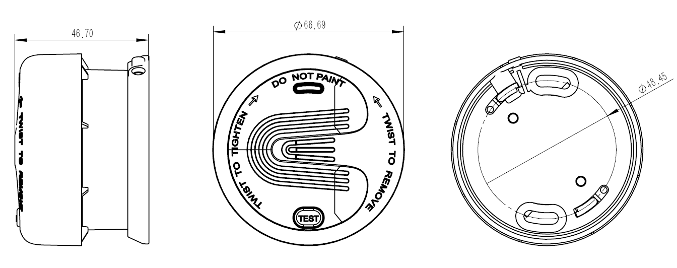 c. Chaque fois que les piles sont remplacées, testez le fonctionnement de l'alarme en appuyant sur la touche TEST. Si les bips sont fabriqués, ce qui signifie que le produit fonctionne correctement, installez l'alarme sur la plaque de montage comme indiqué sur la figure 3.