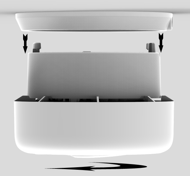 c. Insérez le crochet du produit dans l'emplacement de la plaque de montage. Ensuite, tournez la réveil dans le sens des aiguilles d'une montre jusqu'à ce qu'il s'enclenche.