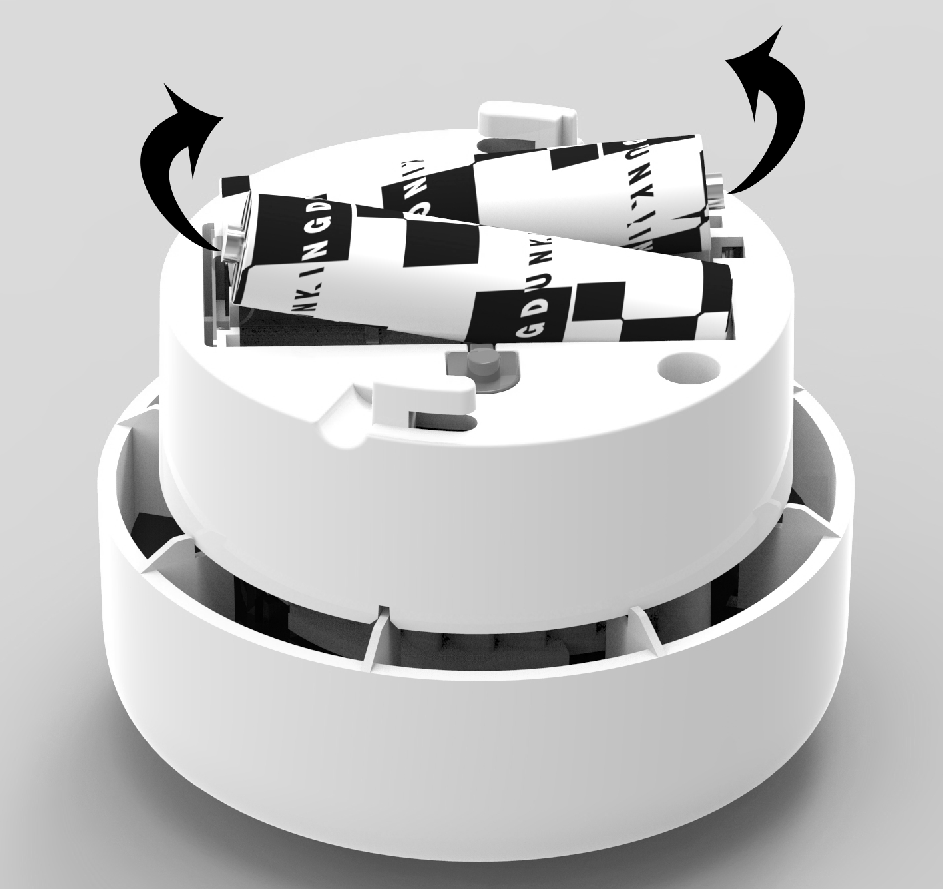 Tournez l'alarme dans le sens anti-aiguillon et prenez les piles et installez